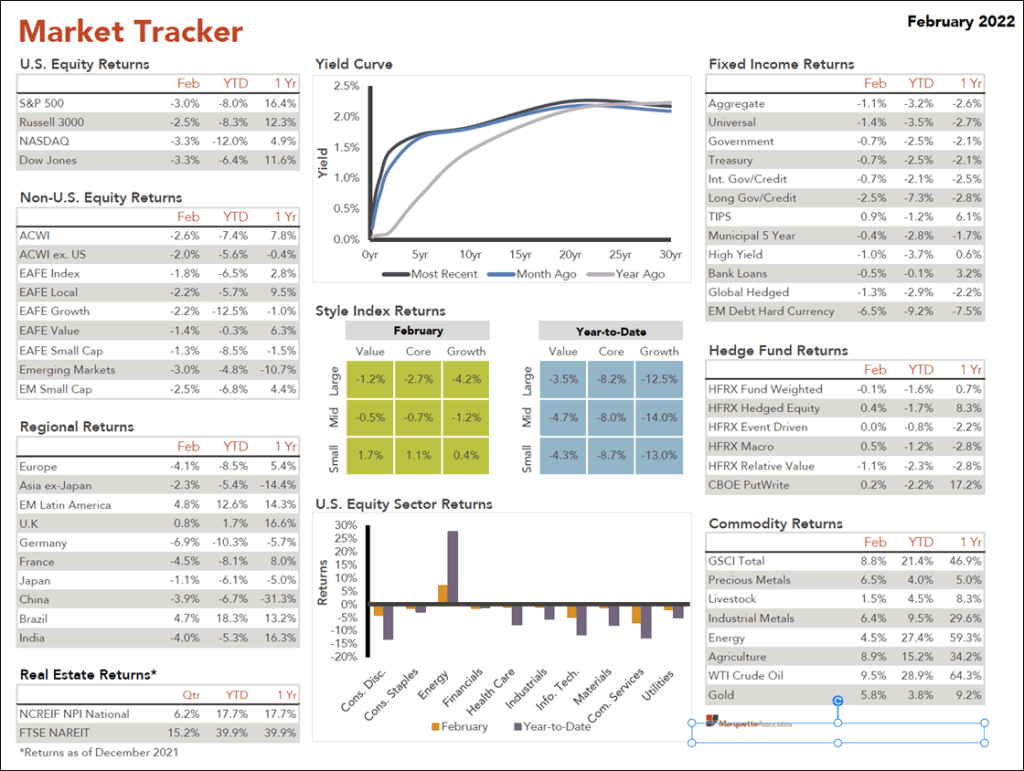 - As the war continues, the level of economic uncertainty increases, especially in eastern Europe. With increased sanctions and elevated prices on commodities, the risk of stagflation in Europe continues to build.